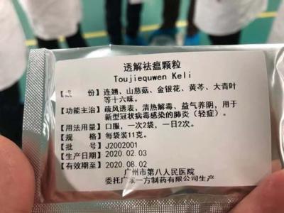 广东省药品监督管理局同意将透解祛瘟颗粒(肺炎1号方)用于新冠肺炎定点医院临床使...