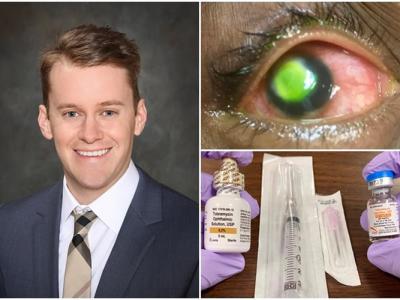 沃尔默公开病患照片(右上)作警戒。照片中的瞳孔流出异样物质...