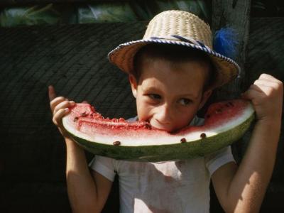这个小男孩在一场庆典上大啖多汁的西瓜,整张脸都快埋进了西瓜裡。摄影:James P...