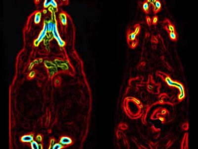 老鼠胃旁路手术前(左)后(右)的PET/ CT扫描 据EurekAlert!报道:那些接受某种...