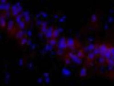 孕期乙醇暴露大鼠的子鼠海马组织中细胞周期性蛋白激酶5荧光染色的神经元数量较多...