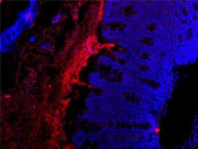 新研究称人体肠道内(蓝色部分)的有益细菌(红色部分)可预防糖尿病 科学家最新...