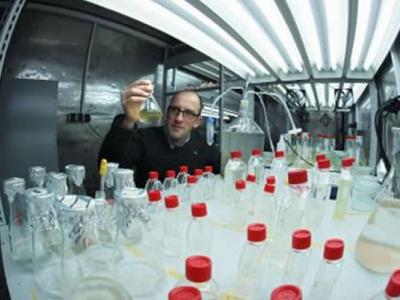 弗里德里希•席勒-耶拿大学化学家Dr. Georg Pohnert检查保存于特殊容器中的...