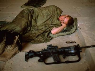 一幅未标注日期的照片,展现了一名睡在伊拉克哈特拉废墟的士兵。哈特拉废墟被联合...