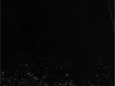 尼日尔夜间灯光的卫星图像,以灰色标出轮廓。 一项新的卫星成像研究报告说,用太...