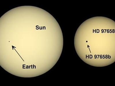HD 97658b行星凌日时的情景,科学家对比了地球与HD 97658恒星系统的整体情况 距...