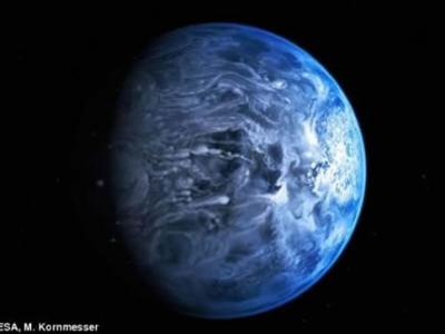 艺术概念图,展示了系外气态巨行星HD 189733b。这颗行星距离母星很近,温度超过1...