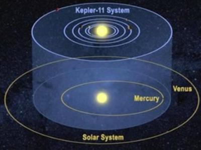 科学家绘制的开普勒-11行星系统,曾被喻为“迷你太阳系” 近日,哈佛-史密森天体...