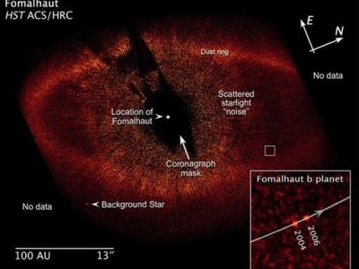 北落师门恒星系统与周围诡异的环形尘埃带(小图显示为2004与2006年探测到的北落师...
