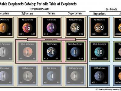 这个宜居星球索表引根据质量和热量将系外行星分成18类,建立了一个类似元素周期表...