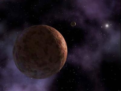 这是太阳系矮行星“塞娜”的艺术绘图,最远端是太阳,在太阳和塞娜之间是一个有待...