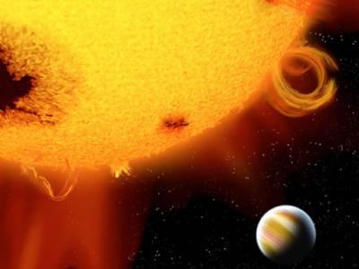 太阳系外行星HD 189733b与其环绕的恒星模拟图 这张哈勃望远镜的照片显示出恒星...