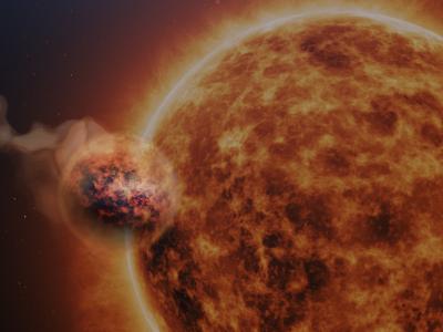 这是一张艺术家对附近系外行星LTT 1445Ac的概念图,它和地球一样大。这颗行星围绕一...