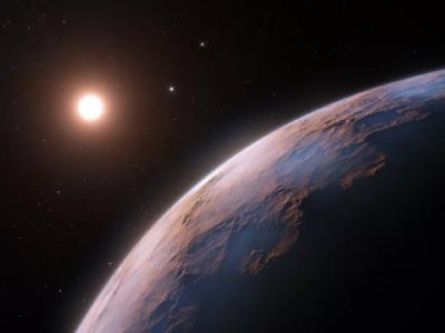 图中是艺术家描绘的比邻星d特写镜头,它环绕着红矮星比邻星(距离太阳系最近的恒星之...