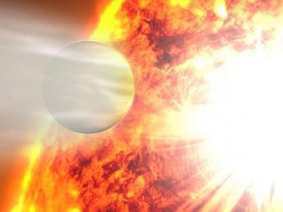 如图所示,这是艺术家描绘的系外行星HD 20782,它是迄今发现最怪异的行星,图中是...