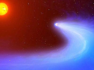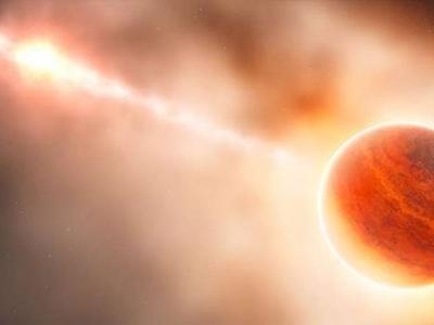 艺术效果图:美国宇航局哈勃空间望远镜发现系外行星GJ 436b拖着一条长长的尾巴...