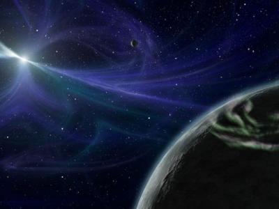 一颗系外行星围绕着脉冲星公转,受到脉冲星辐射的影响,其大气层发出明亮的极光(...