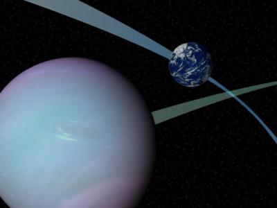艺术家绘制的“醉酒”行星轨道示意图,科学家认为摇摆不定的特点使得该行星表面可...