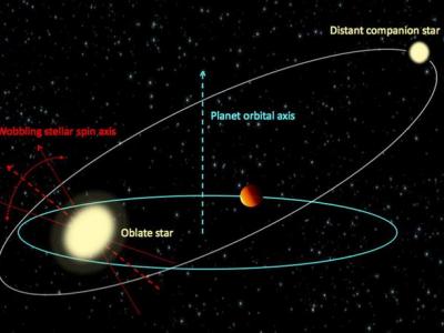 最新研究表明,当气态热木星穿越行星系统时,会使主恒星的旋转轴产生动荡。 (神...