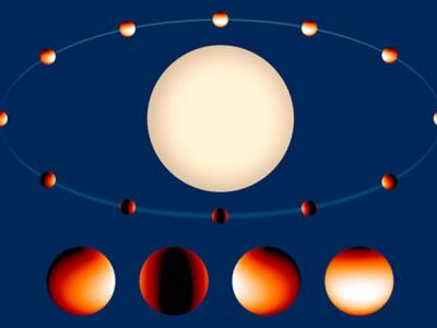 美国宇航局绘制的WASP-43b系外行星不同季节的水汽分布,这颗行星轨道周期仅为19个...