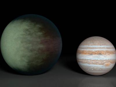 体积为木星(图右)半径1.5倍大的开普勒7b行星(图左),是第一颗可绘製出云图的...