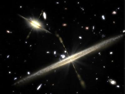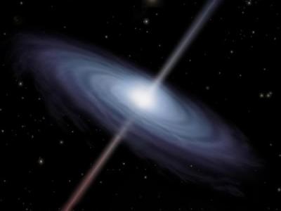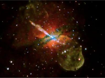 星系中超大质量的黑洞向外放射出强大的能量喷流 宇宙中的黑洞是极为神秘的,由一...