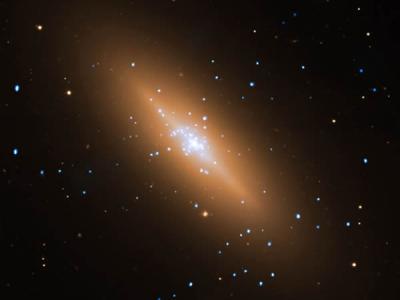 这张星系NGC 3115的合成图像结合了美国宇航局钱德拉X射线空间望远镜和欧洲南方天...