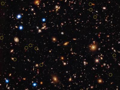 这张图像被称为“钱德拉深空场-南部”(X射线)以及哈勃对同一天区的成像(可见光...