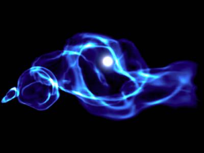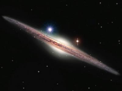 黑洞位于银河系中间 艺术家对HLX-1光源的印象-银河系核球左上方的蓝色物体 据...