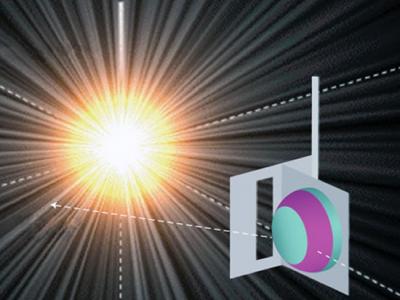 在被激光束轰击后,一个小塑胶球(太阳状的天体)释放出了X射线,其中的一些射线...