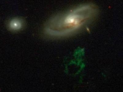 该神秘天体是一个死亡类星体释放光线照亮一个较大的发光气体云,这个类星体位于中...