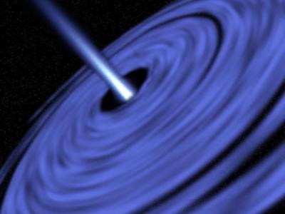 黑洞及吸积盘 新的一项研究表明,逆向旋转的黑洞能够制造更大的喷气流。此研究结...