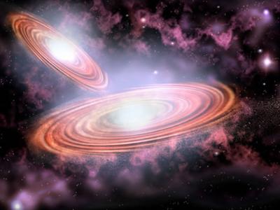 两个融合中的特大质量黑洞 这是天文学家第一次发现特大质量的黑洞也有孪生兄弟。...