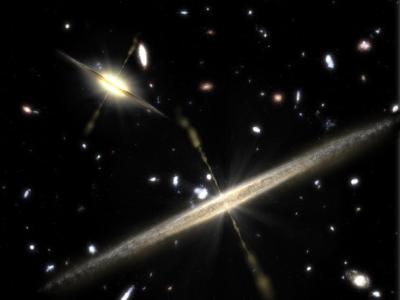 画家创作的HE450-2958 类星体和其临近星系 HE450-2958类星体的合成图片,综合...