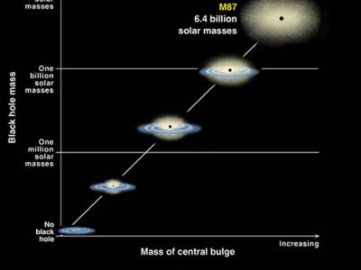 最大黑洞的质量是太阳的64亿倍 这一黑洞位于巨型星系M87的中心附近 据美...