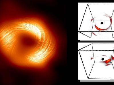 (左)银河系中心超大质量黑洞人马座A*(右)Sgr A*周围耀斑的3D模拟照片(图片来源...