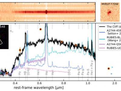 The Cliff的近红外光谱/棱镜光谱(RUBIES-UDS-154183),zspec=3.548。图片来源:u...