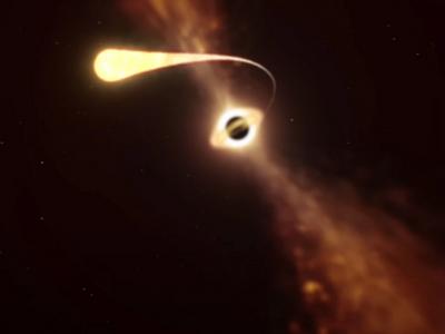 NASA视频展示一颗恒星在围绕黑洞旋转时被
