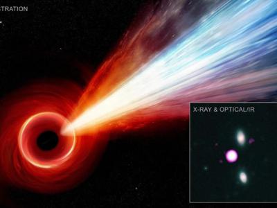 天文学家利用钱德拉X射线天文台发现早期宇宙中一个超大质量黑洞的超长粒子射流的证...