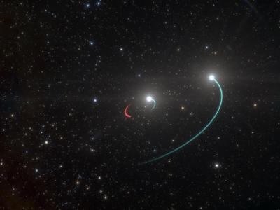 这张艺术家想象图描绘出HR 6819三体系统中的天体运行轨道。 这...