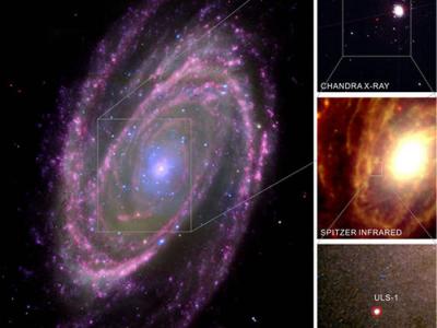 旋涡星系M81中的极亮超软X射线源位置。彩图由美国的Hubble空间望远镜、GALEX紫外...