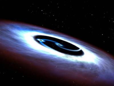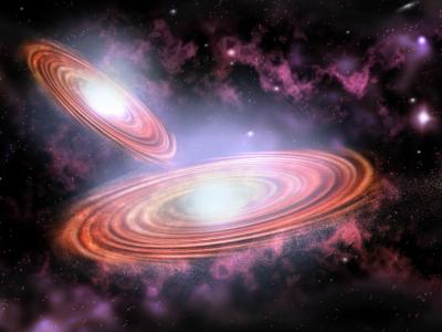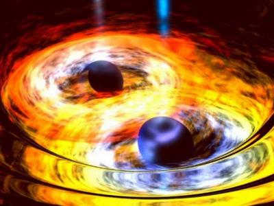 这是艺术家描绘的彼此环绕的双黑洞结构,最新研究表明,宇宙中存在双黑洞的星系数...