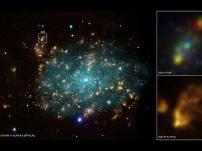 NGC 7793星系的P13黑洞释放出强烈的辐射, 图像下方我们可以看到非常明亮的蓝色光...