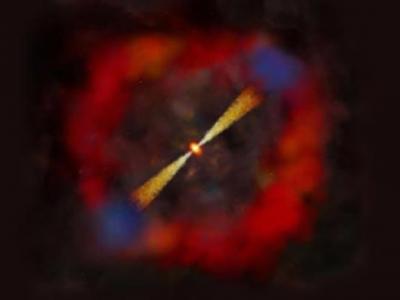 遥远星系中央超大黑洞的某种巨型喷出物 近日天文学家似乎发现了遥远星系中央超大...
