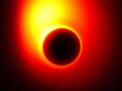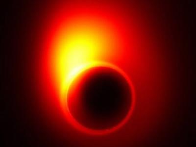 计算机模拟生成的M87星系中央区域黑洞极端引力场扭曲周围物质的效果图 典型的...