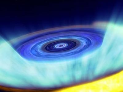 典型的超大质量黑洞剥离恒星物质的想象图:恒星物质在黑洞周围形成同心圆的环结构...