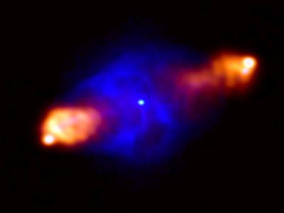 天鹅座A中心的特大质量黑洞正向宇宙中喷射着距离超过20万光年的气体流。图片来源...