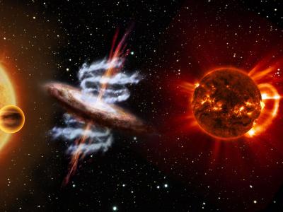 这位艺术家的概念展示了一个假设的事件,称为超千新星。一颗大质量恒星在超新星爆炸...