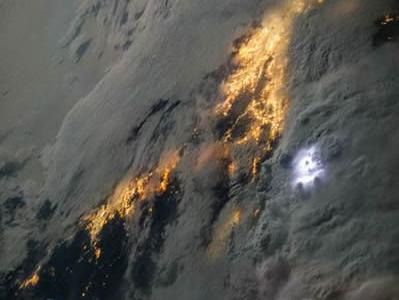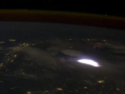 国际空间站上拍摄的闪电和暴风雨降落地球