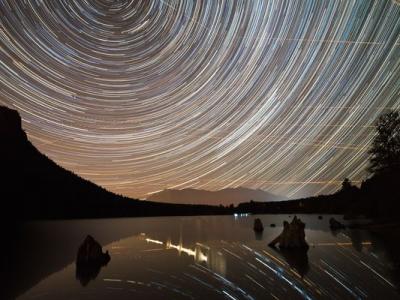 美国华盛顿州西雅图附近一个湖面上的星轨